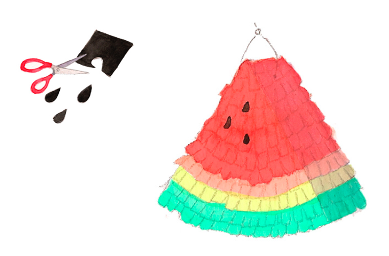 Star des goûters d’anniversaire, la pinata traditionnelle du Mexique se prête à toutes les fantaisies se rhabillant même, à la maison, aux couleurs de la pastèque.