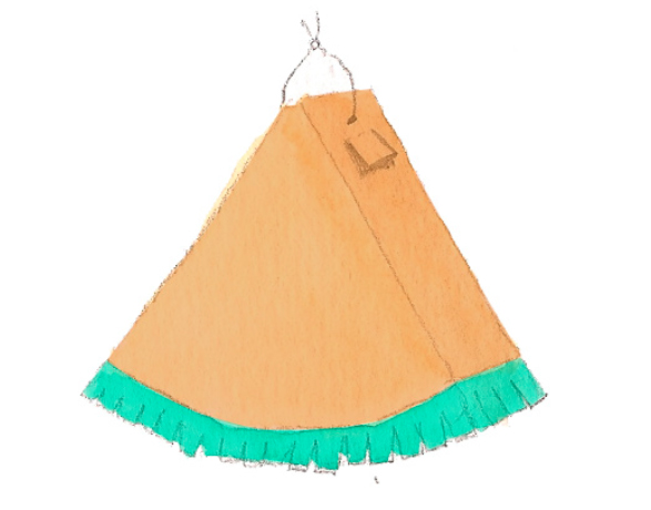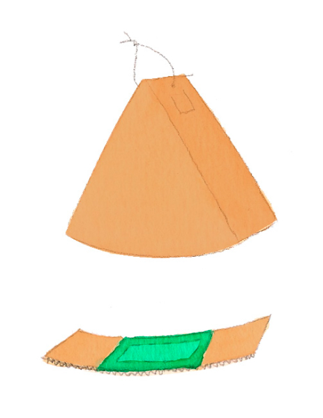 Sur une des parties larges du carton, dessinez un cône d’environ 60 cm de rayon à l’aide de la règle et du compas (ou de la ficelle tendue). Découpez-le puis utilisez-le comme un patron pour obtenir son jumeau.