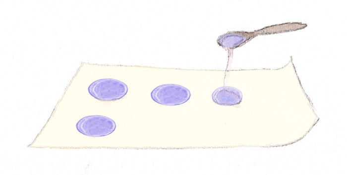 Faire couler à la cuillère le mélange obtenu sur le papier sulfurisé pour obtenir un cercle.